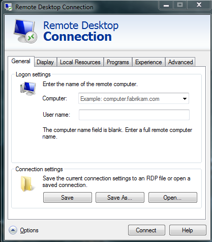 3. 在“计算机”框中输入 serverip:4489,将 serverip 替换为您在 HostGator 欢迎邮件中收到的服务器 IP 地址。例如,如果您的 IP 地址是 123.45.67.8,则输入 123.45.67.8:4489。
