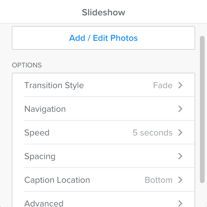 注意:幻灯片会自动扩展到您放置它的页面或列的宽度。
