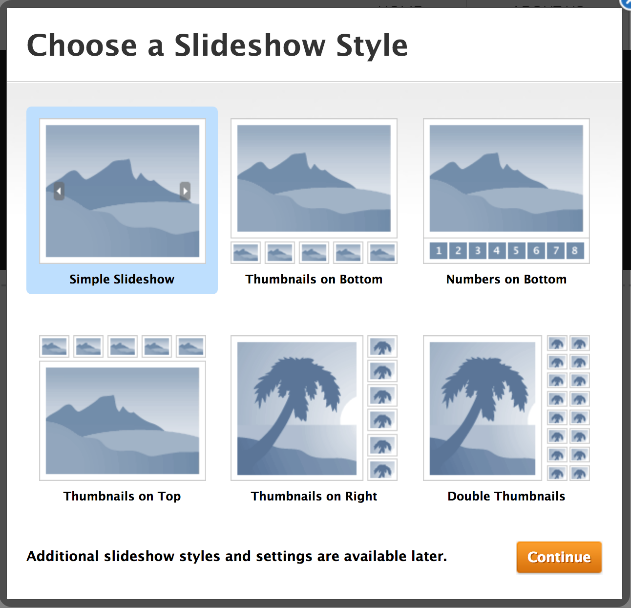 - Choose a slideshow style and click Continue. You can always change your decision later, so don't spend too much time on this step. There will be more slideshow styles to choose from later.