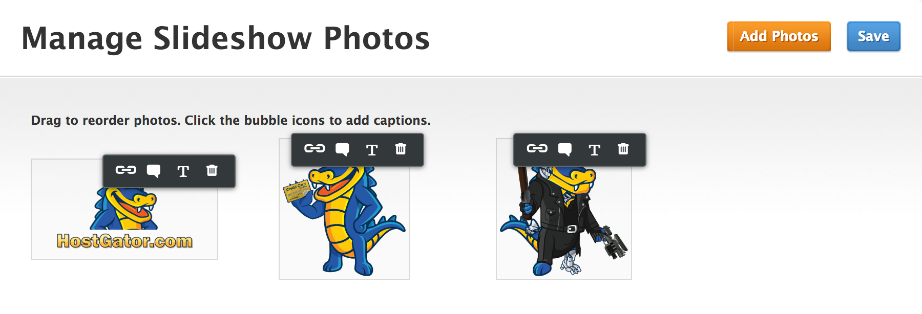 - Use the Add / Edit Photos button to bring up the Manage Slideshow Photos dialog box.